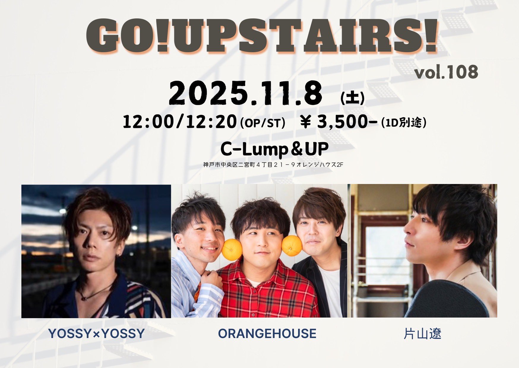 11月8日(土) 「Go!Upstairs! vol.108」 ArtGarage C-Lump&UP 片山遼/YOSSY×YOSSY/ORANGEHOUSE 12:00/12:20 3,500円(1D代別)